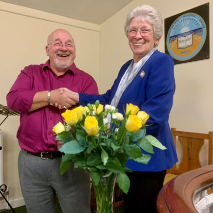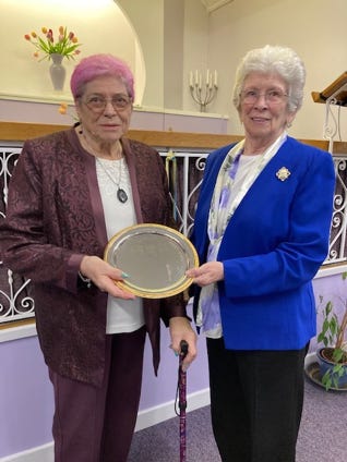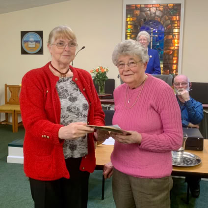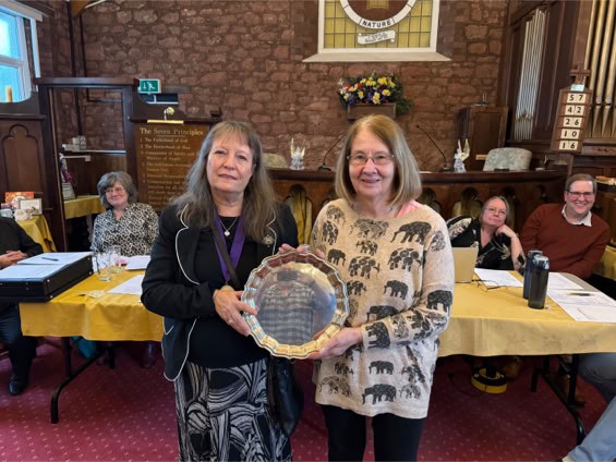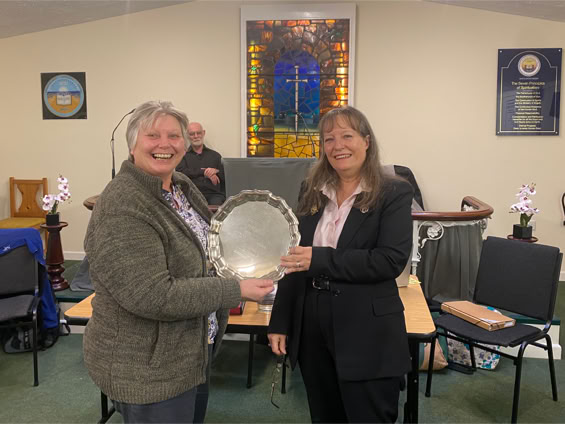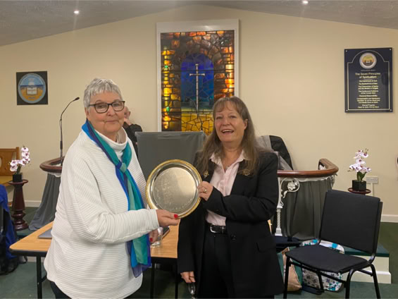 Carole Stapenhill, president of Paignton Church receiving the IM Plate from DC president Minister Kim Moore-Cullen • 2023