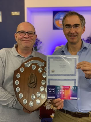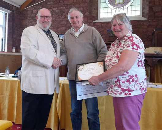 District President Tim Coombe presents the National Church of the Year Award to Mike Flaun and Claire Henderson of Newton Abbot SC • 2025