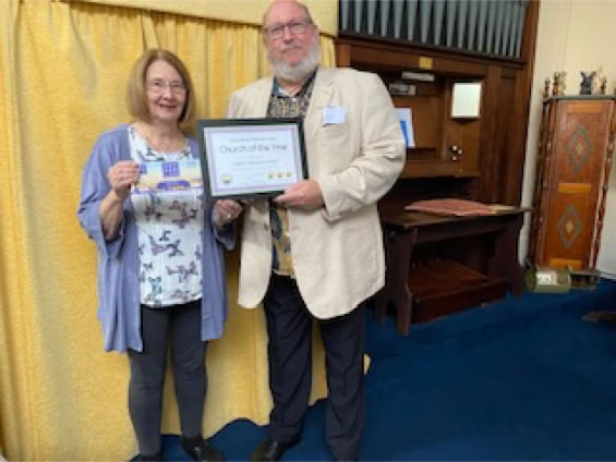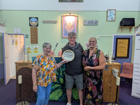 The 2025 Service to Spirit Award being presented to Darren Turner by Church Secretary Claire Henderson