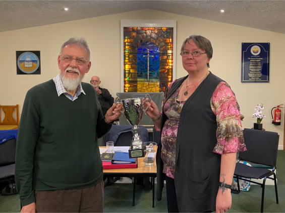 Anne Jenkins, president of Paignton SC, receiving the National Church of the Year Award from Tim Coombe • 2024