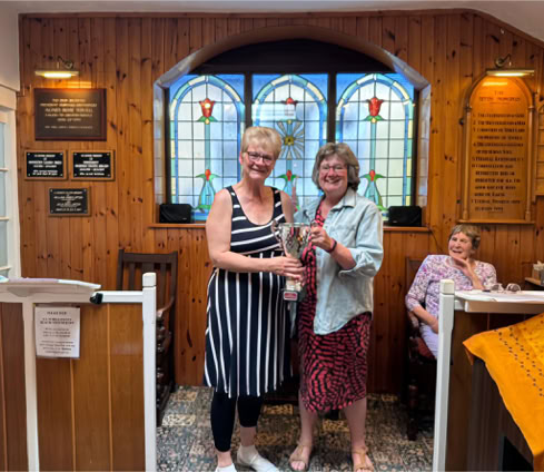 The 2025 Rosemary Cup for education being presented to Stephanie Collins by Church President Rachel Arnold from Weston Super-Mare